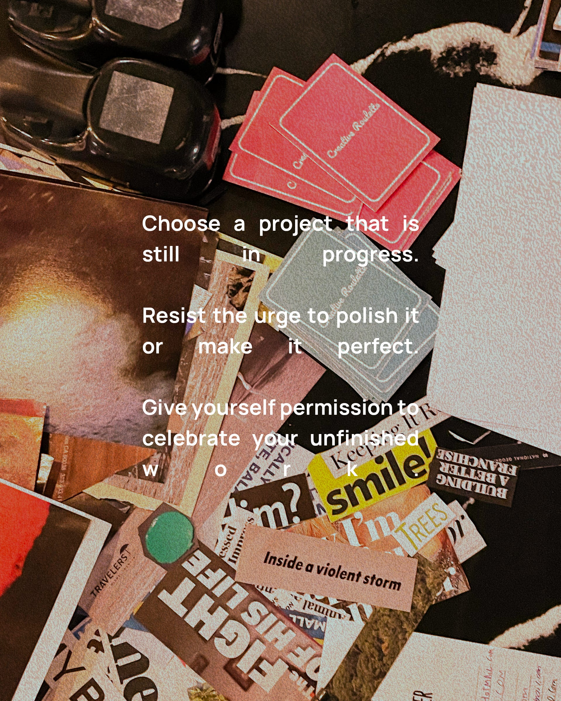 Instead of waiting for the perfect, finished version of your work, share something unfinished, in-progress, or even stuck. Take a moment to appreciate the effort you’ve already put in.