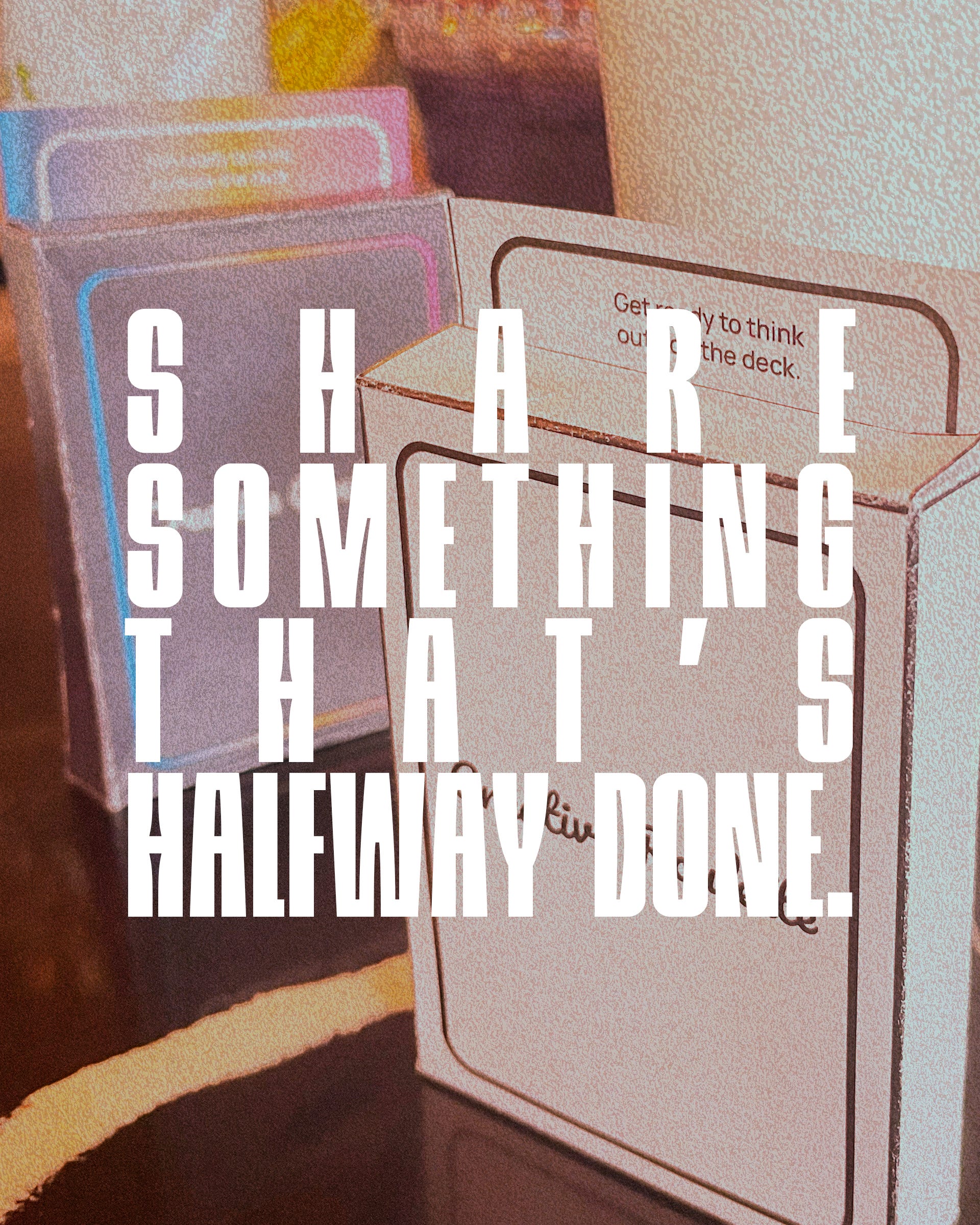 Your mission this week: Share something that’s halfway done.
