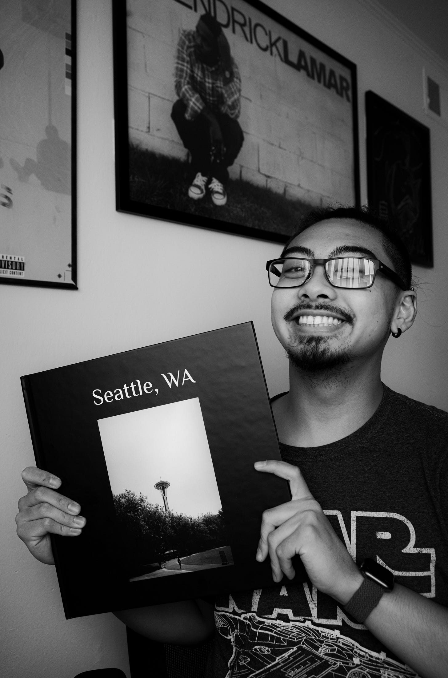 This is my book! A little back story here: my book was inspired by the beauty of Seattle, Washington, and its amazing people. This was my first trip, dedicating my love for black and white photography. I wanted to challenge myself by creating this book and seeing what I can learn from seeing my photos go from digital to physical print.