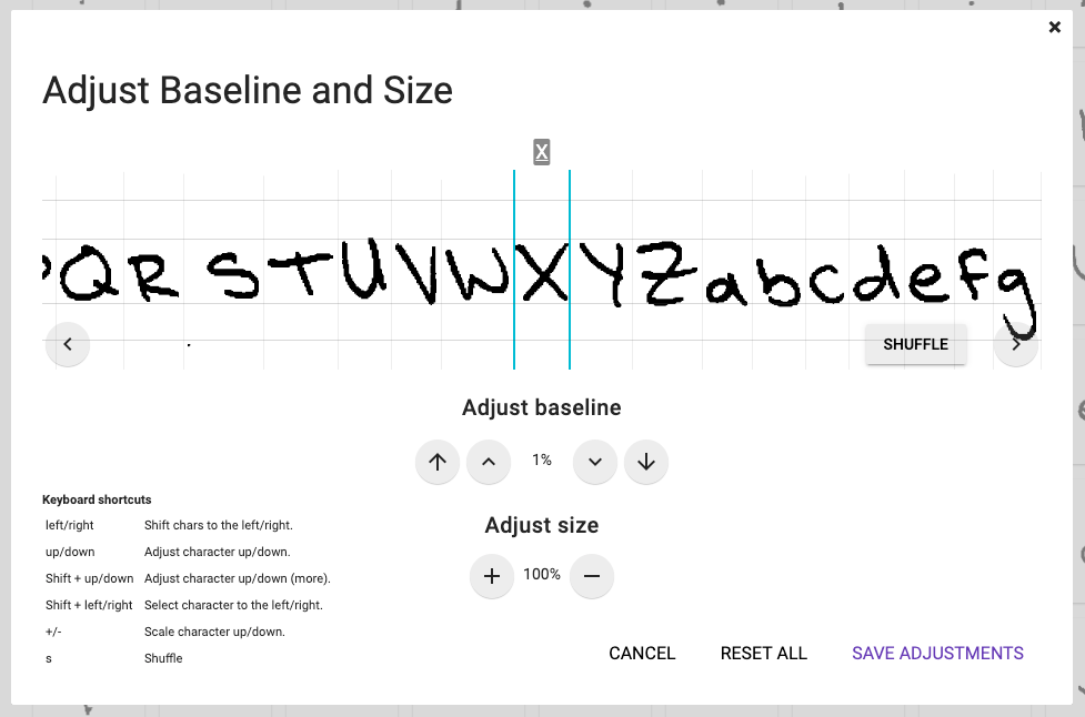 That’s about as much as we can do on the free version of this app. You will have to adjust the kerning (the space between letters) and leading (the space between lines) manually in your digital apps, but you now have a free handwritten font!