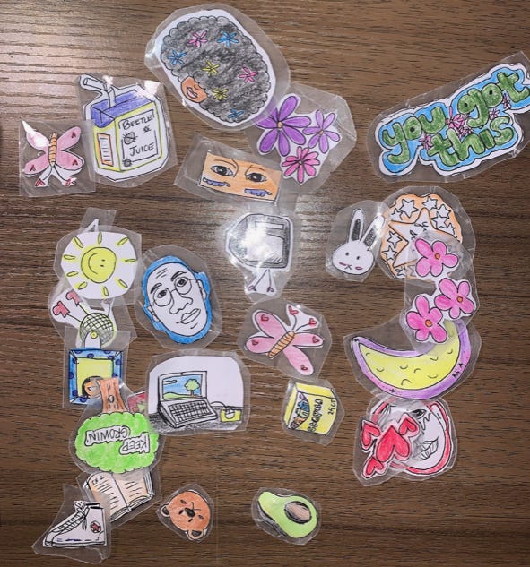 For this week’s challenge, I took some inspo from doing a quick dive on Pinterest. I began looking into decorating notebooks, which led me to think about how cool it would be to make your own stickers in the comfort of your home. When looking for inspiration on new projects to do, a resource that helps me is Pinterest. I had an itch to decorate my notebook which led me down a rabbit hole where I found this video on how to make your own stickers!