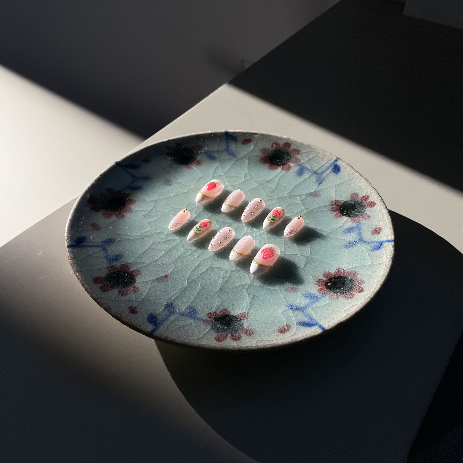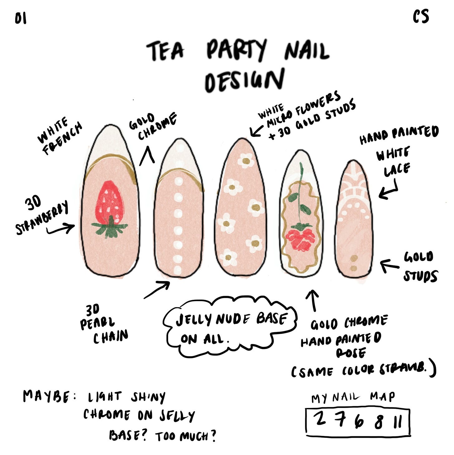 Avia challenged me to design to a specific theme, in this case, we are creating tea-party-themed nails.