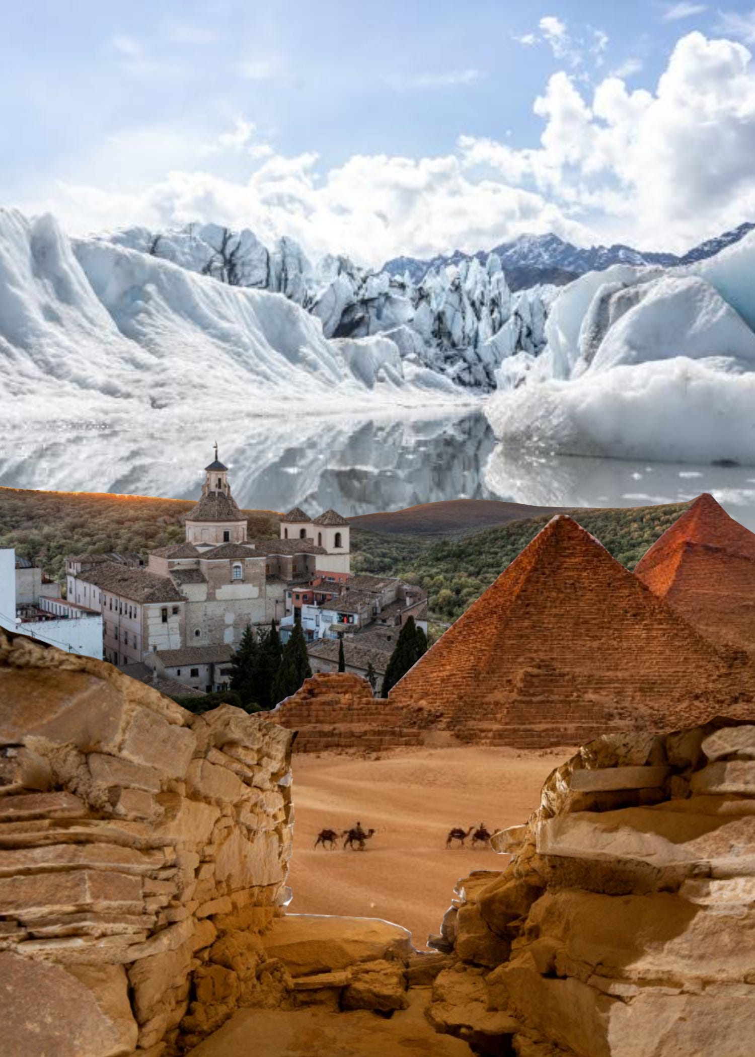 Build a scene: Use portions of pictures from different places and combine them to create a brand new scene. If you like the mountains in one picture, cut it out, and place it with that sunset in the desert. It doesn’t need to make sense.