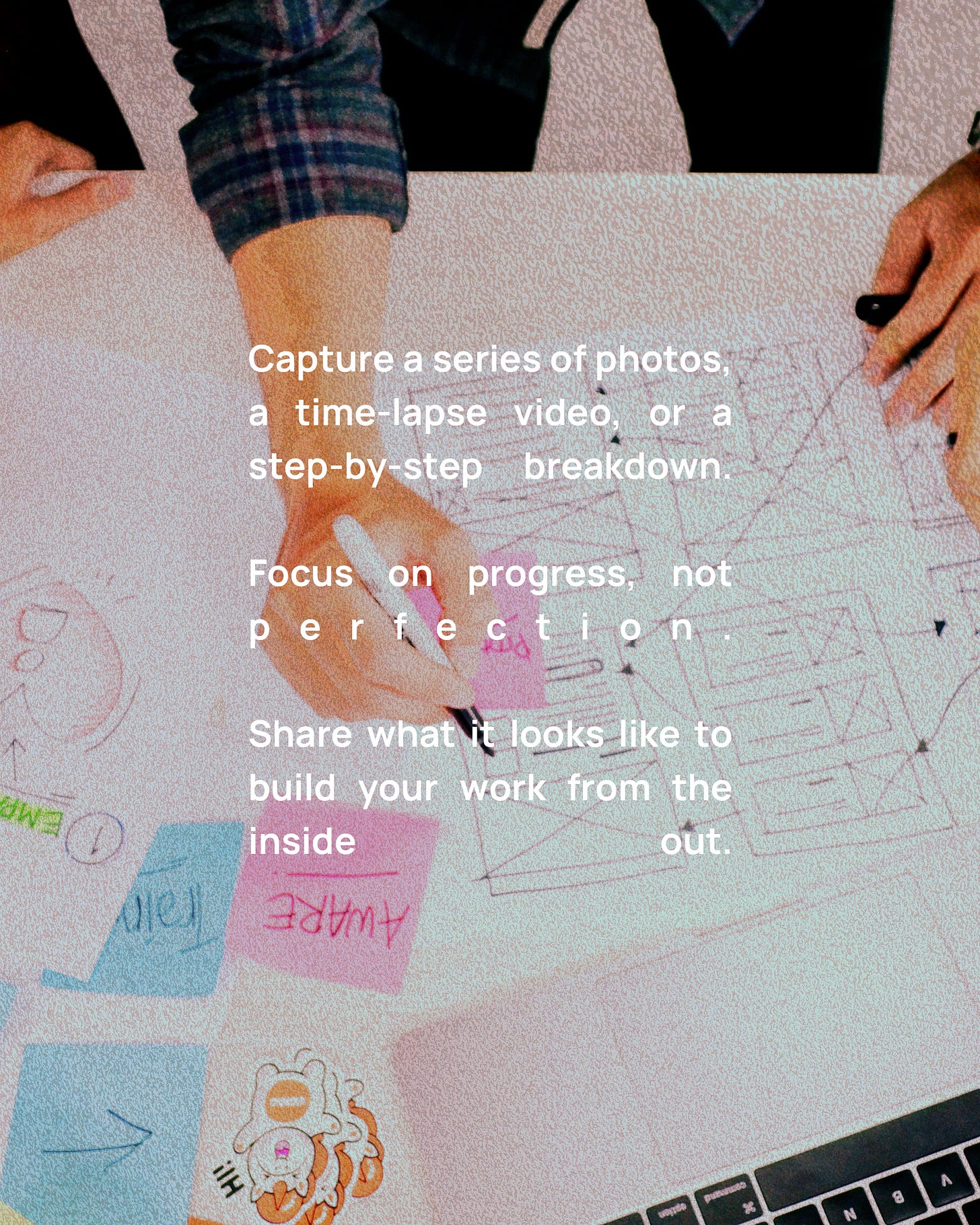 This week, we invite you to slow down and document your creative process. Show the in-between moments, the tiny decisions, the parts no one usually sees. Whether it's through photos, notes, or audio clips, focus less on what you’re making and more on how you’re making it.