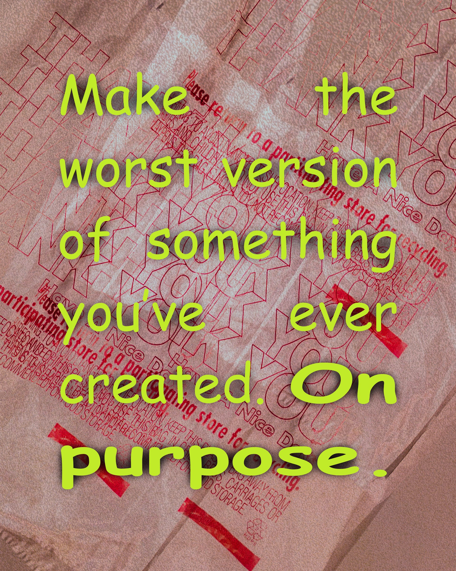 Your mission this week: Make the worst version of something you’ve ever created. On purpose.