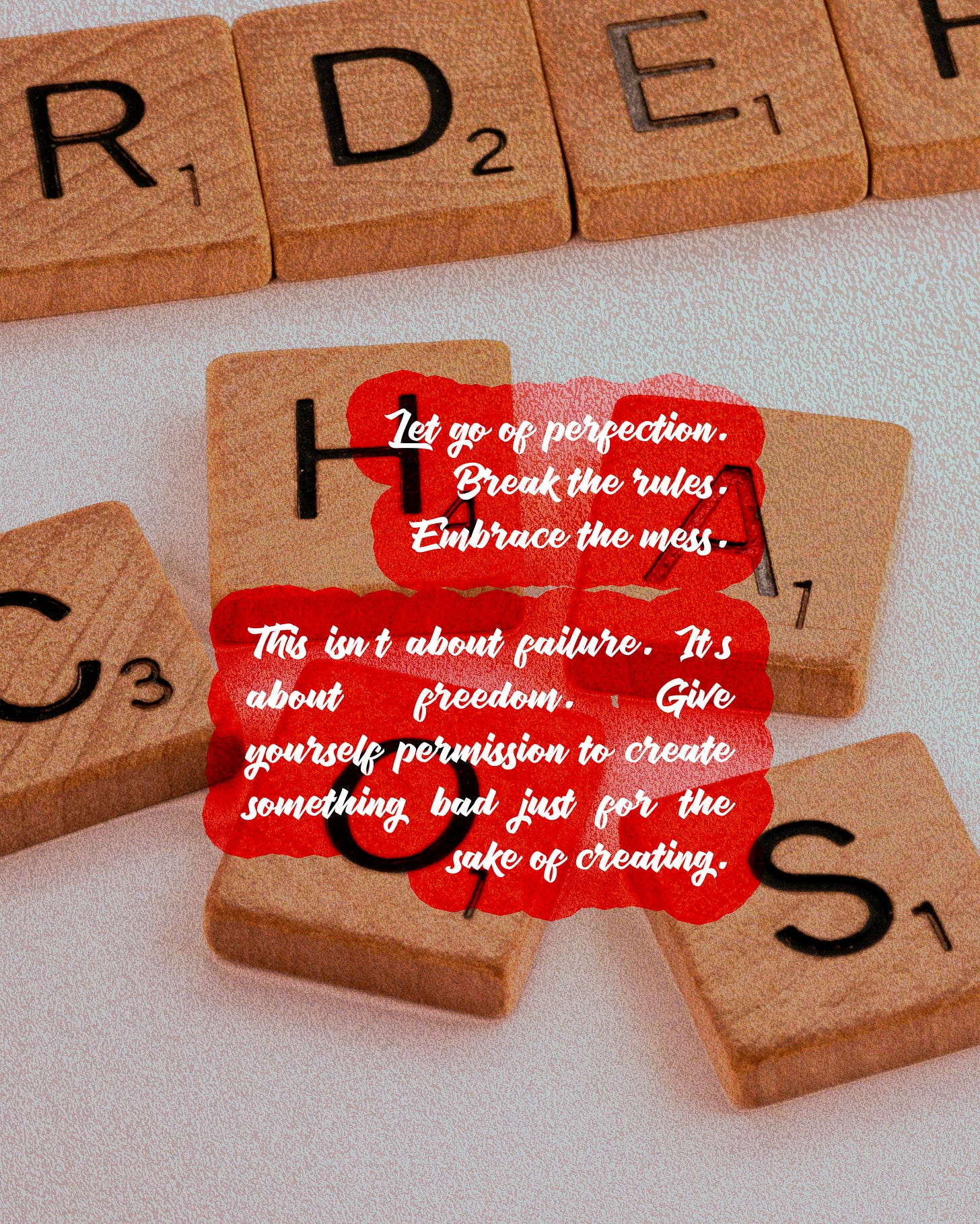 This isn’t about failure. It’s about freedom. Give yourself permission to create something bad just for the sake of creating.