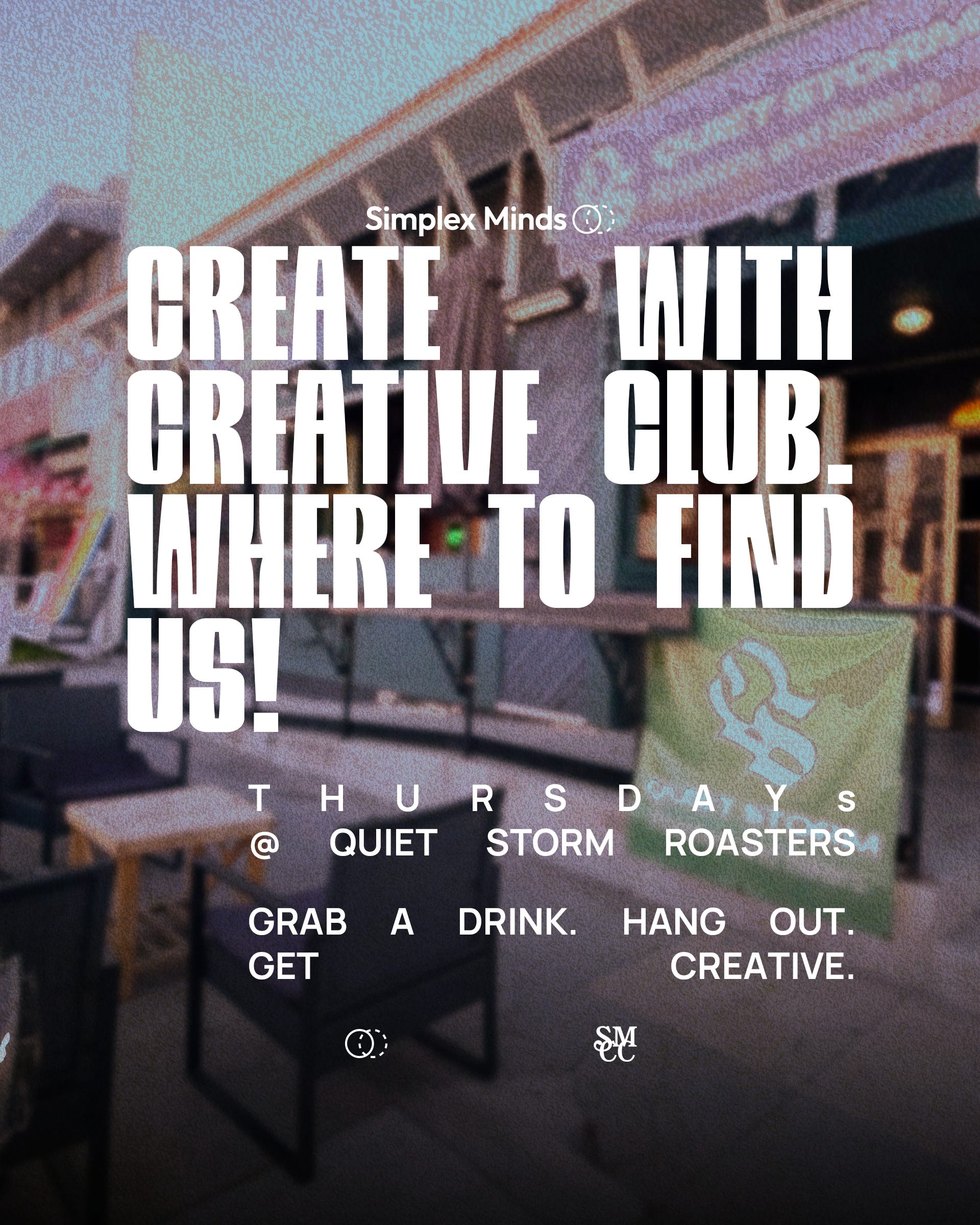 Every Thursday from 4-7PM you can catch in person Creative Club events at Quiet Storm Roasters! (3590 Fifth Ave, San Diego, CA 92103)